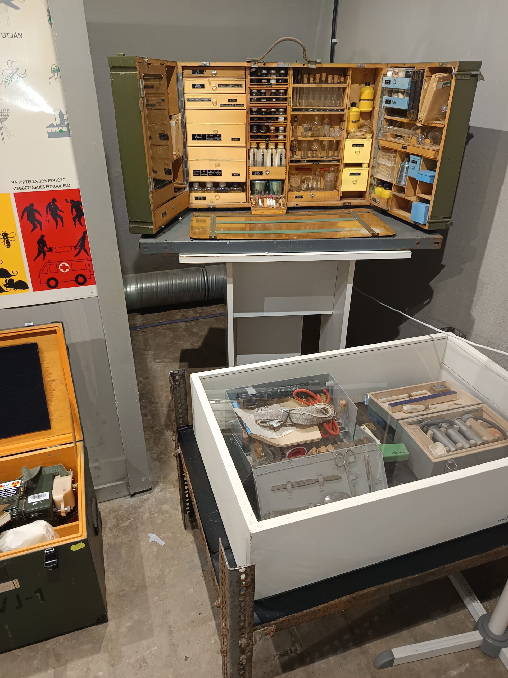 A főbejáratnál fertőtlenítő zuhanyzó helyiség szolgált a fertőtlenítésre. A mentesítés után lehetett belépni az objektumba.