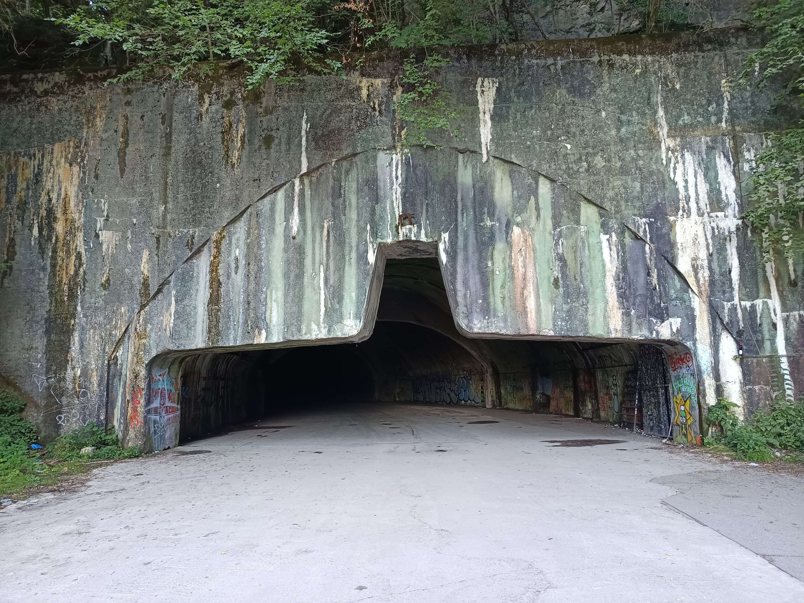 A hegy gyomrába vezető, monumentális portálok a bázis „kapui”. A meggyűrődött fő robbanásgátló ajtók 100 tonnát nyomtak, vastagságuk 60 cm. Ezeket speciális hidraulikus rendszer mozgatta, ezek máig láthatók.
